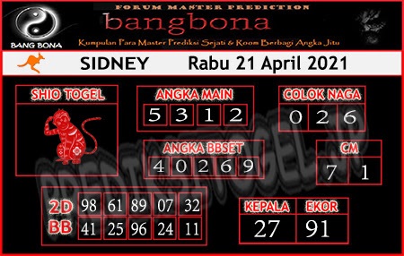 Kode Syair Sdy Rabu 21 April 2021, meliputi forum syair sydney , Bocoran sdy serta prediksi togel sidney dan di lengkapi juga dengan data pengeluaran sdy 2021 .