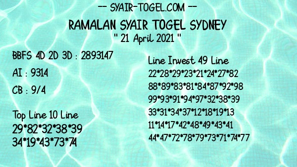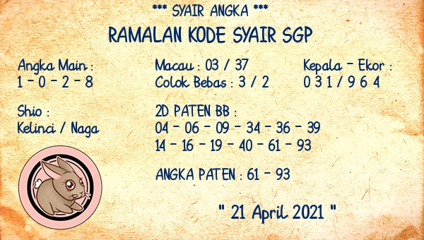 Syair Sdy Rabu 21 April 2021