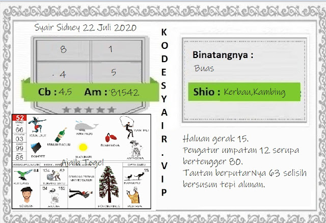 Kode Syair Sdy Rabu 22 Juli 2020 meliputi forum syair sydney , paito warna sdy serta prediksi togel sidney dan di lengkapi juga dengan data pengeluaran sdy 2020 .