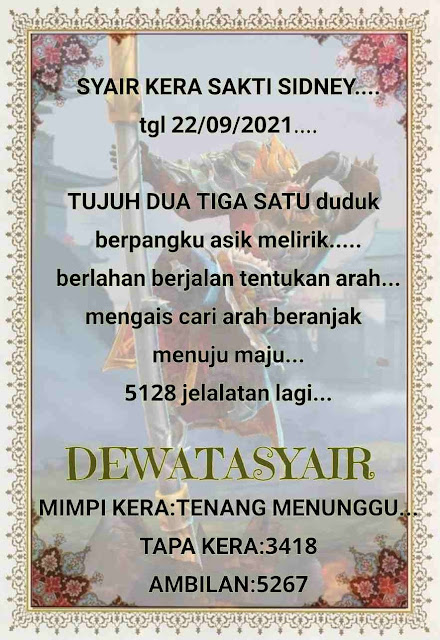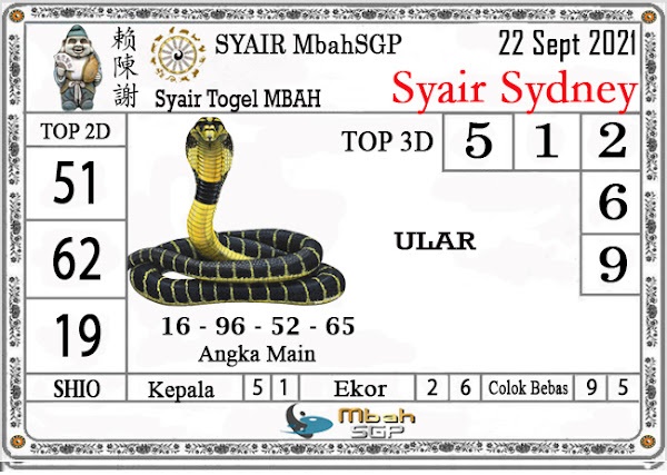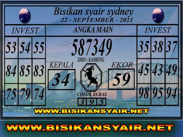 Kode Syair Sdy Rabu 22 September 2021 , meliputi forum syair sydney , Bocoran sdy serta prediksi togel sidney dan di lengkapi juga dengan data pengeluaran sdy 2021 .