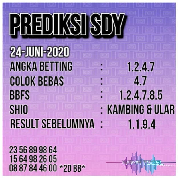 Prediksi togel Sdy hari ini 24 Juni 2020