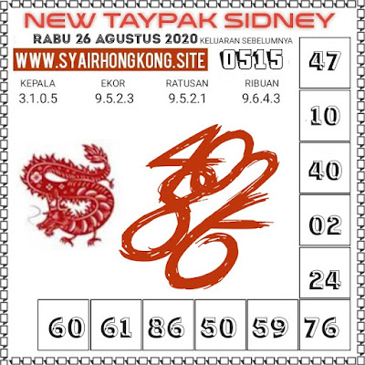 Kode Syair Sdy Rabu 26 Agustus 2020 meliputi forum syair sydney , paito warna sdy serta prediksi togel sidney dan di lengkapi juga dengan data pengeluaran sdy 2020 .