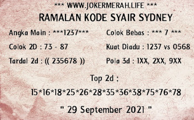 Kode Syair Sdy Rabu 29 September 2021 , meliputi forum syair sydney , Bocoran sdy serta prediksi togel sidney dan di lengkapi juga dengan data pengeluaran sdy 2021 .