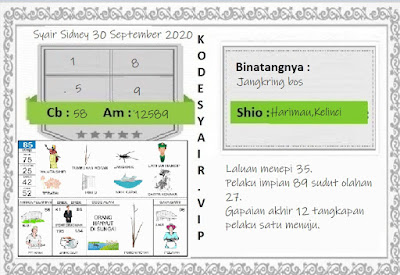 Kode Syair Sdy Rabu 30 September 2020 meliputi forum syair sydney , paito warna sdy serta prediksi togel sidney dan di lengkapi juga dengan data pengeluaran sdy 2020 .