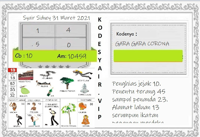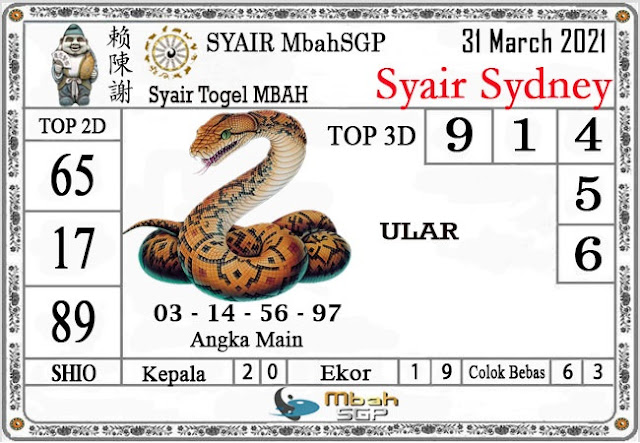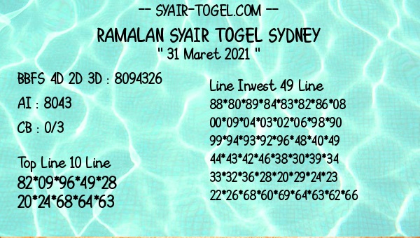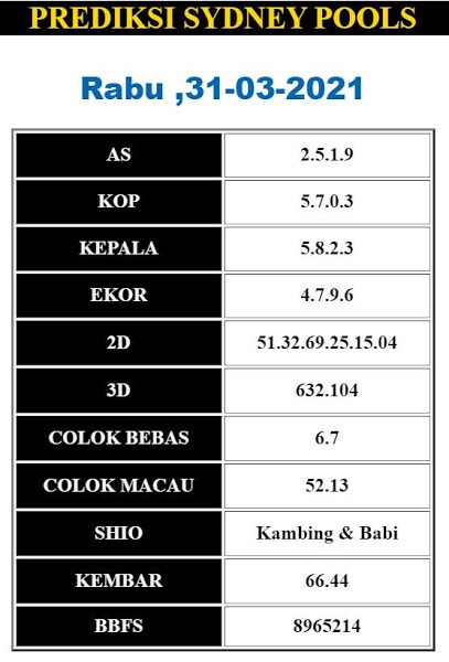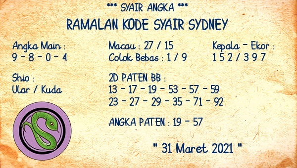 Kode Syair Sdy Rabu 31 Maret 2021, meliputi forum syair sydney , paito warna sdy serta prediksi togel sidney dan di lengkapi juga dengan data pengeluaran sdy 2021 .