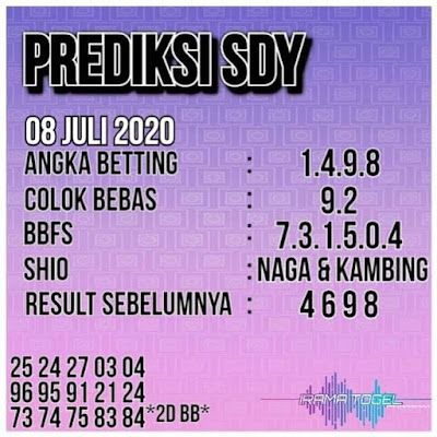 Prediksi togel Sdy hari ini 08 Juli 2020