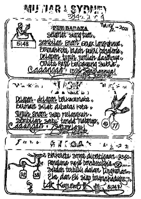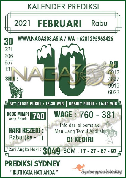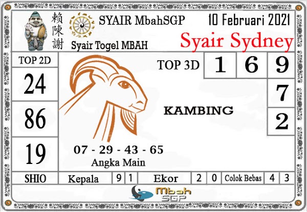 Kode Syair Sdy Rabu10 Februari 2021, meliputi forum syair sydney , paito warna sdy serta prediksi togel sidney dan di lengkapi juga dengan data pengeluaran sdy 2020 .