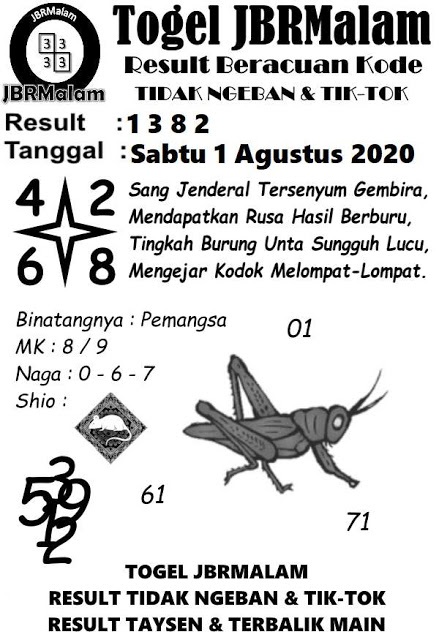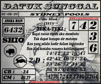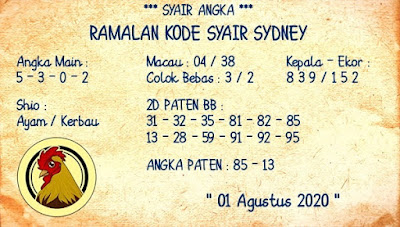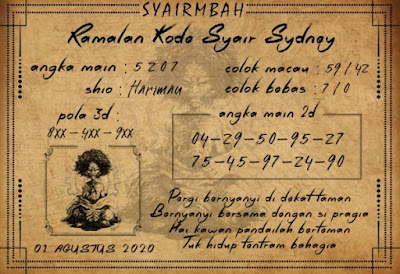 Syair Sdy Sabtu 1 Agustus 2020