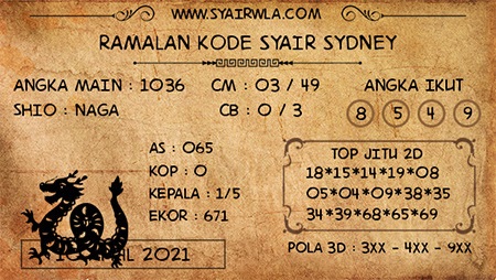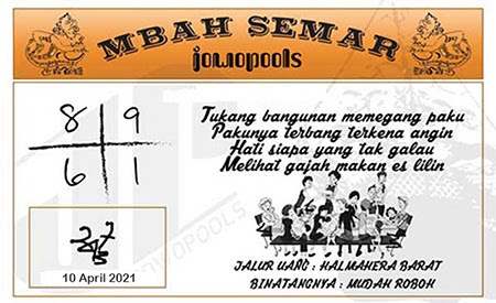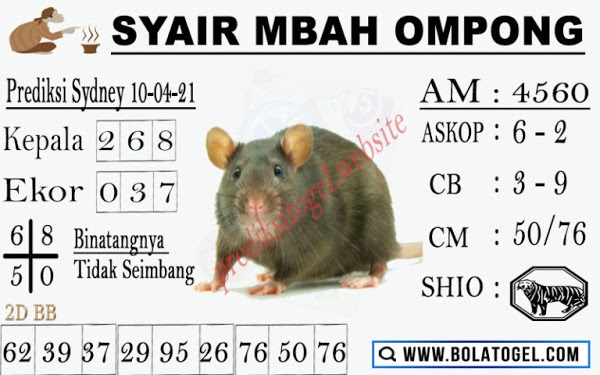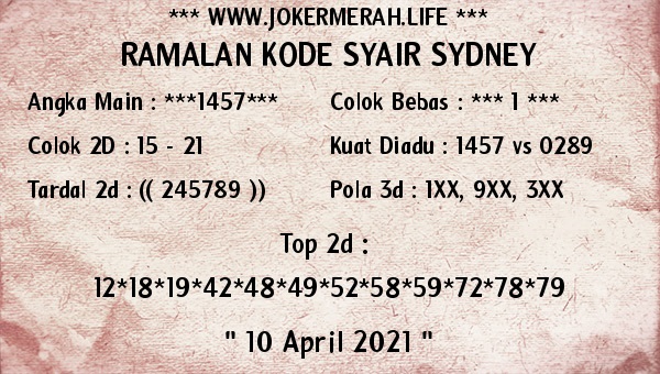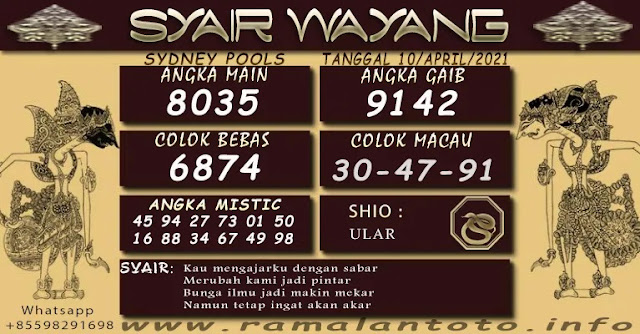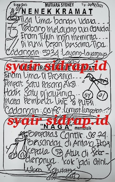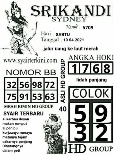 Syair Sdy Sabtu 10 April 2021