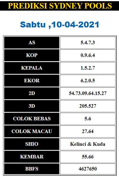 Kode Syair Sdy Sabtu 10 April 2021 , meliputi forum syair sydney , Bocoran sdy serta prediksi togel sidney dan di lengkapi juga dengan data pengeluaran sdy 2021 .