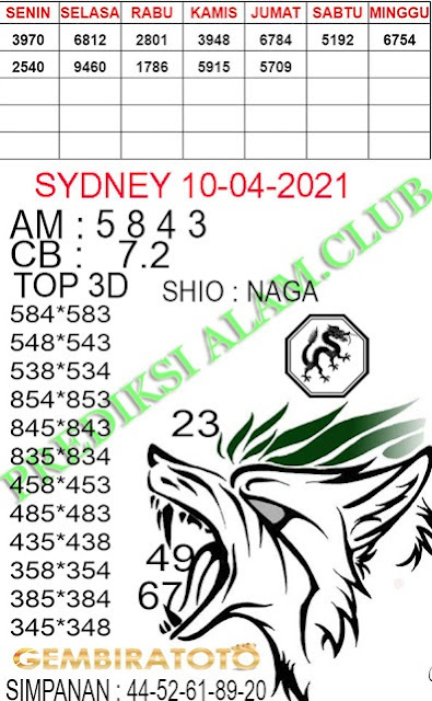 alhasil Forum code syair sidney akan di lengkapi paling cepat dan terlengkap seluruh nya pada pukul 10.30 pagi, sebalik nya untuk prediksi akan lebih cepat kalau data sdy 2020 akan di tambahkan pada jam result sdy .