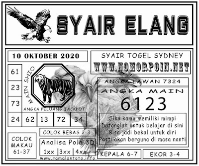 Syair Sdy Sabtu 10 Oktober 2020