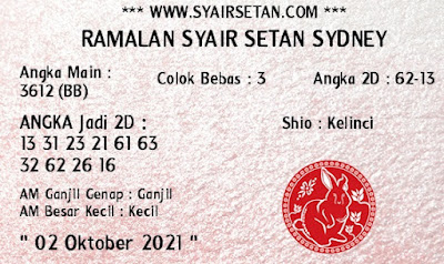 Kode Syair Sdy Sabtu 2 Oktober 2021 , meliputi forum syair sydney , Bocoran sdy serta prediksi togel sidney dan di lengkapi juga dengan data pengeluaran sdy 2021 .