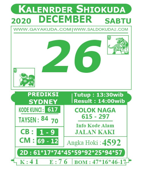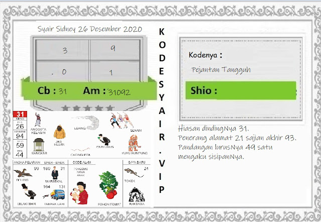 Kode Syair Sdy Sabtu 26 desember 2020 meliputi forum syair sydney , paito warna sdy serta prediksi togel sidney dan di lengkapi juga dengan data pengeluaran sdy 2020 .