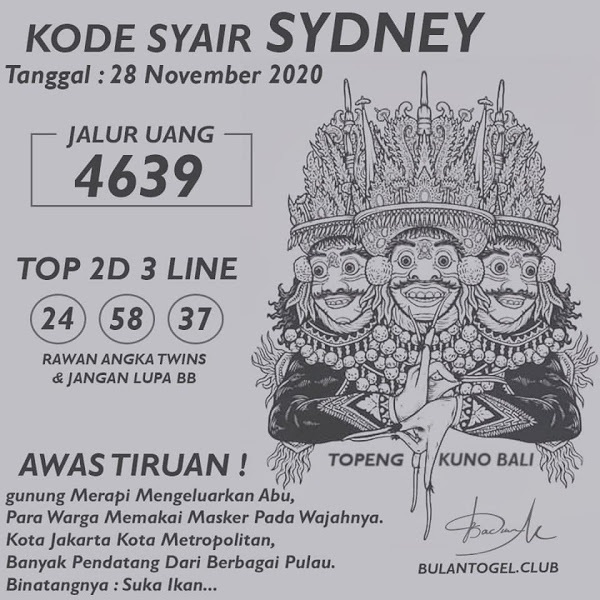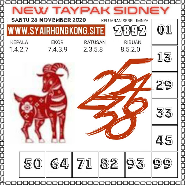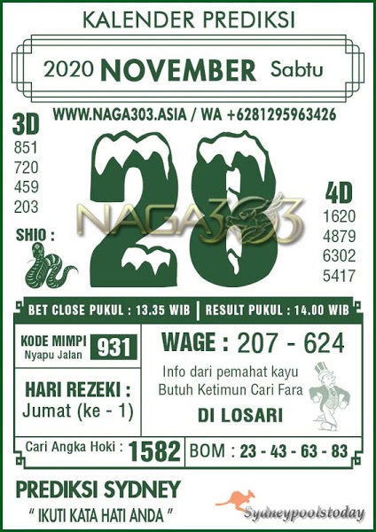 Kode Syair Sdy Sabtu 28 November 2020 meliputi forum syair sydney , paito warna sdy serta prediksi togel sidney dan di lengkapi juga dengan data pengeluaran sdy 2020 .