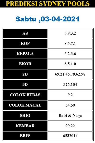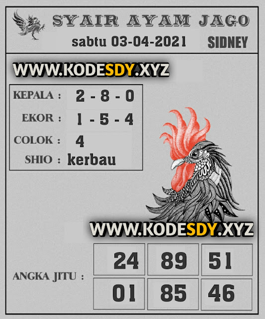 Kode Syair Sdy Sabtu 3 April 2021, meliputi forum syair sydney , paito warna sdy serta prediksi togel sidney dan di lengkapi juga dengan data pengeluaran sdy 2021 .