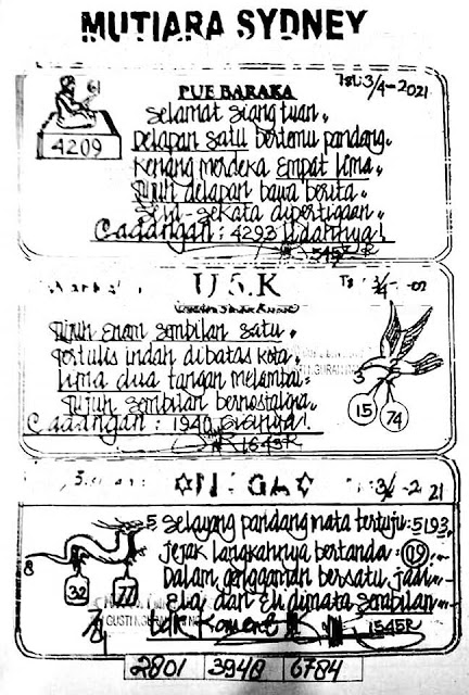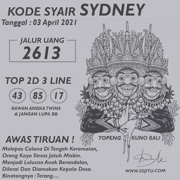 Syair Sdy Sabtu 3 April 2021