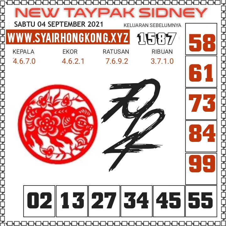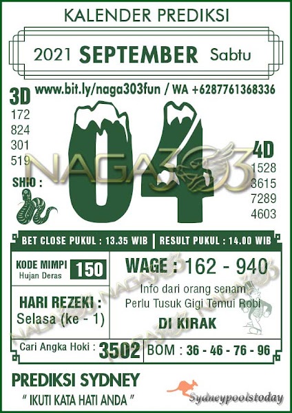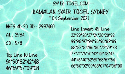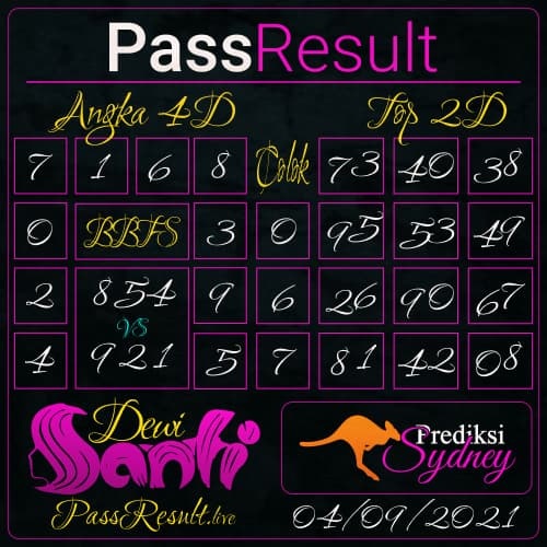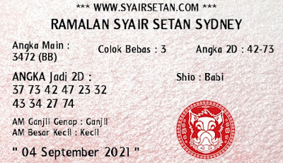 Kode Syair Sdy Sabtu 4 September 2021 , meliputi forum syair sydney , Bocoran sdy serta prediksi togel sidney dan di lengkapi juga dengan data pengeluaran sdy 2021 .