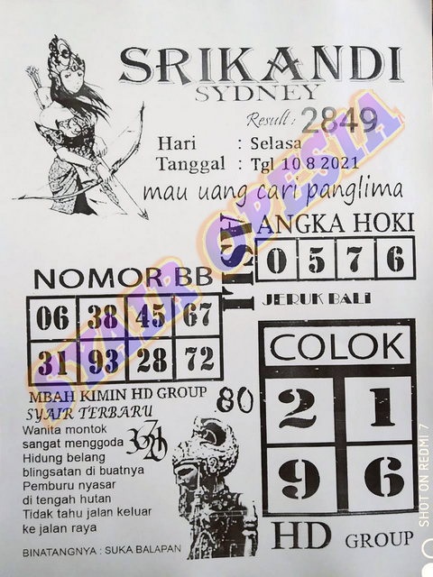 Syair Sdy Selasa 10 Agustus 2021
