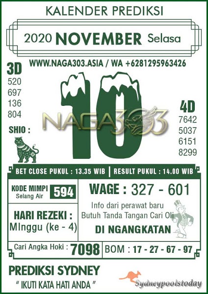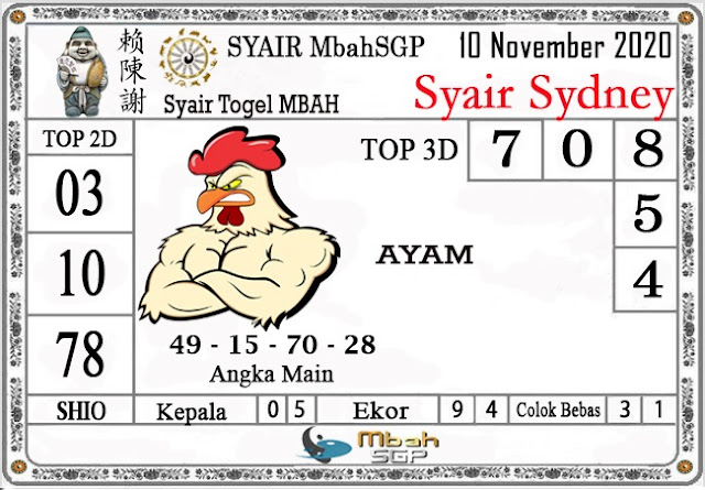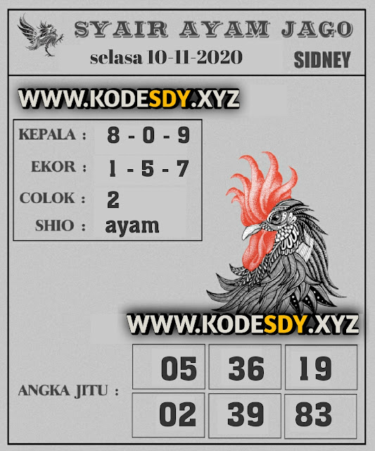 Kode Syair Sdy Selasa 10 November 2020 meliputi forum syair sydney , paito warna sdy serta prediksi togel sidney dan di lengkapi juga dengan data pengeluaran sdy 2020 .
