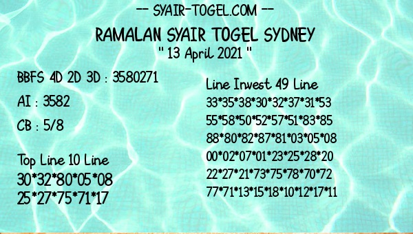 Kode Syair Sdy Selasa 13 April 2021, meliputi forum syair sydney , Bocoran sdy serta prediksi togel sidney dan di lengkapi juga dengan data pengeluaran sdy 2021 .