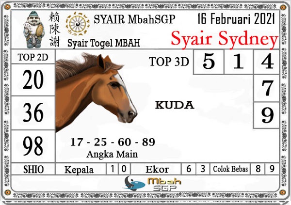 Kode Syair Sdy Selasa 16 Februari 2021, meliputi forum syair sydney , paito warna sdy serta prediksi togel sidney dan di lengkapi juga dengan data pengeluaran sdy 2020 .