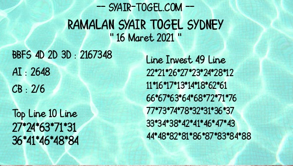 Syair Sdy Selasa 16 Maret 2021
