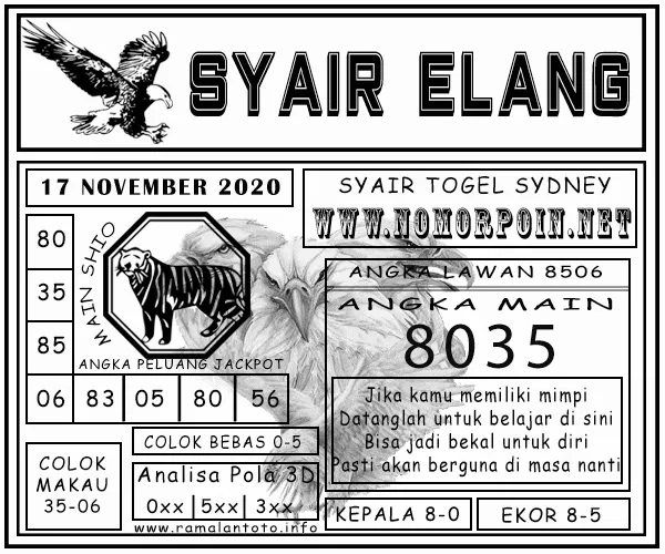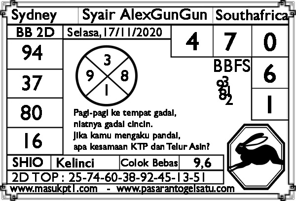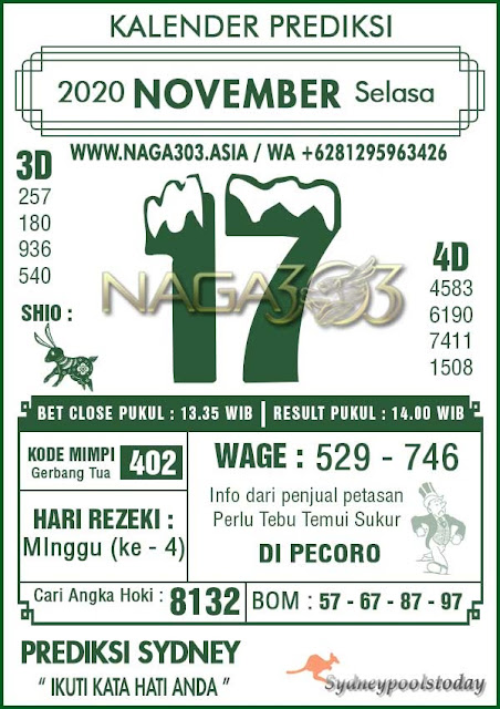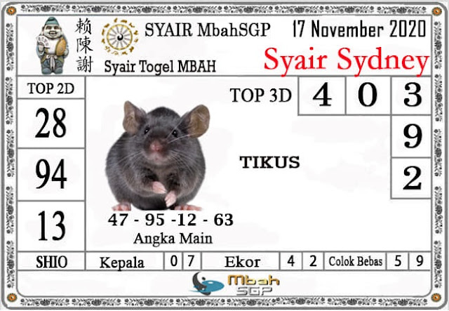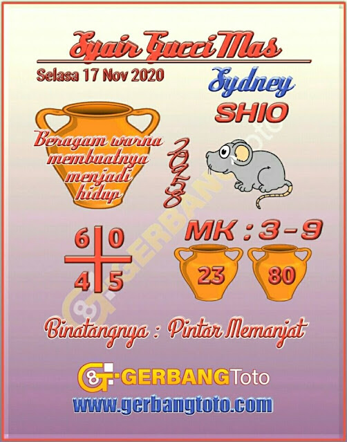 Syair Sdy Selasa 17 November 2020