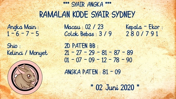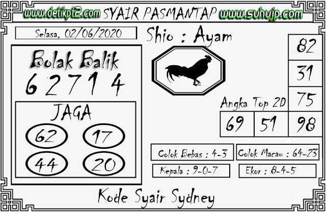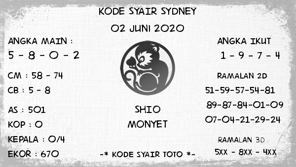 Kode Syair sdy Selasa 2 Juni 2020 meliputi forum syair sydney , paito warna sdy serta prediksi togel sidney dan di lengkapi juga dengan data pengeluaran sdy 2020 .