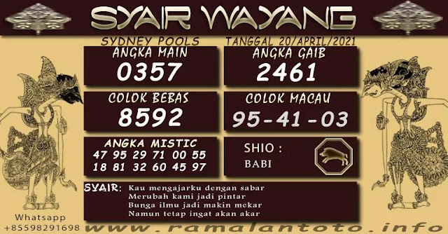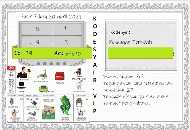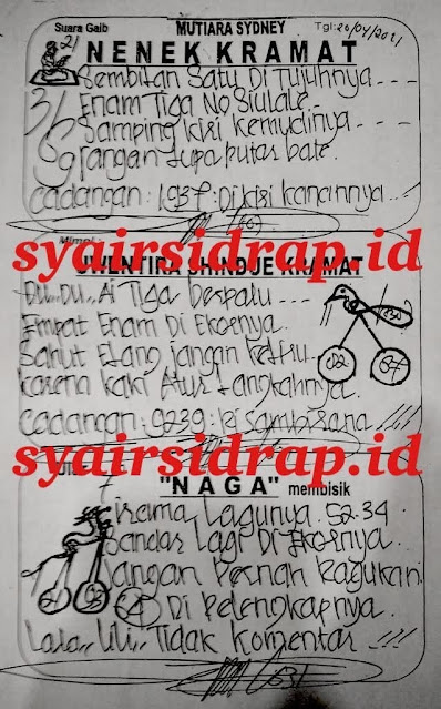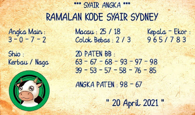 Kode Syair Sdy Selasa 20 April 2021, meliputi forum syair sydney , Bocoran sdy serta prediksi togel sidney dan di lengkapi juga dengan data pengeluaran sdy 2021 .