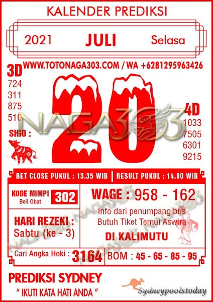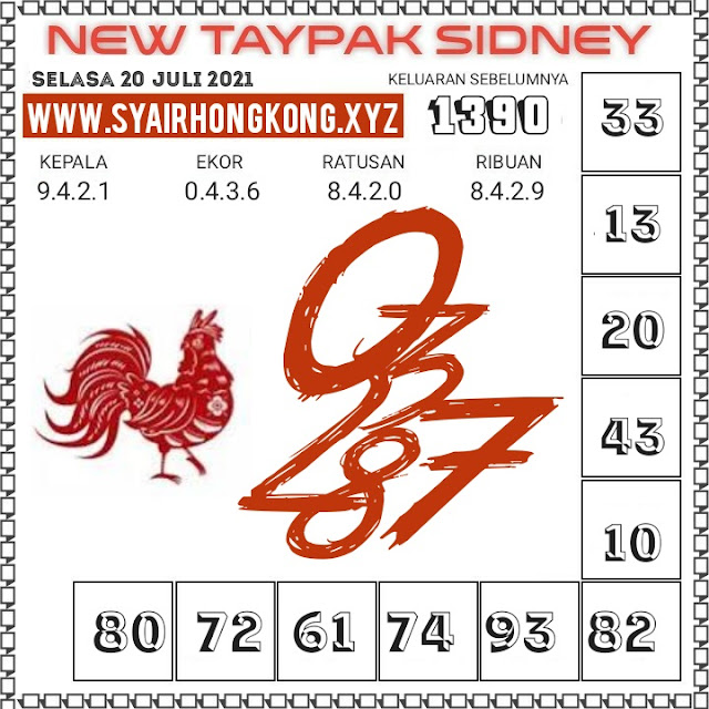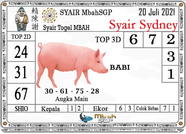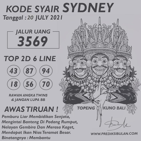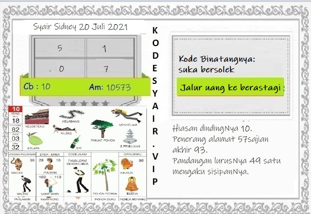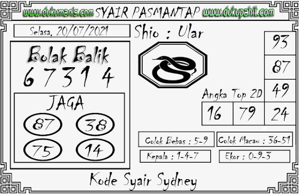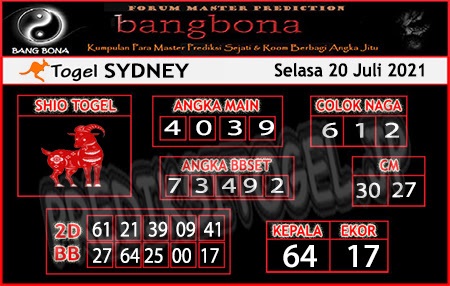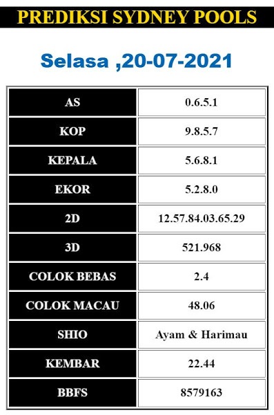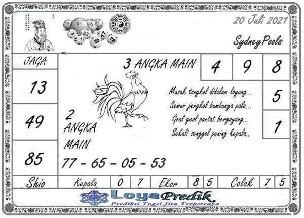 Kode Syair Sdy Selasa 20 Juli 2021, meliputi forum syair sydney , Bocoran sdy serta prediksi togel sidney dan di lengkapi juga dengan data pengeluaran sdy 2021 .