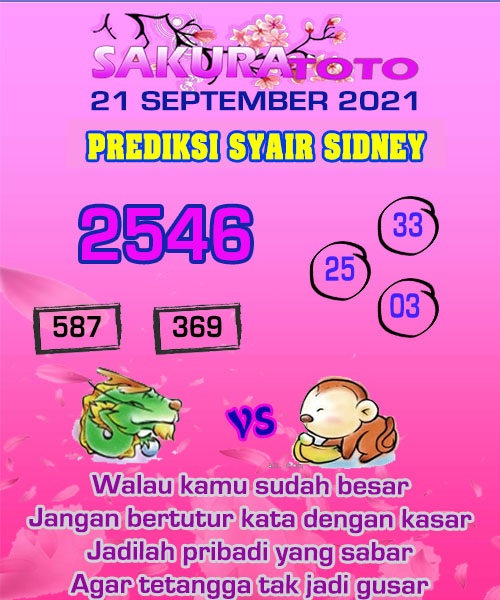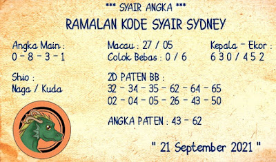 Kode Syair Sdy Selasa 21 September 2021 , meliputi forum syair sydney , Bocoran sdy serta prediksi togel sidney dan di lengkapi juga dengan data pengeluaran sdy 2021 .
