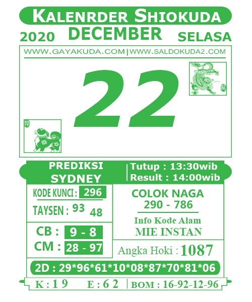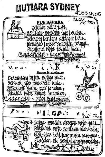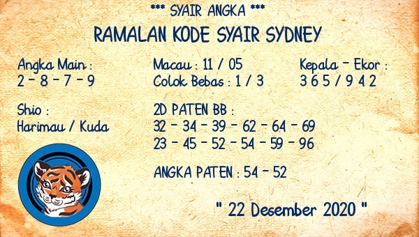 Kode Syair Sdy Syair Sdy Selasa 22 desember 2020 meliputi forum syair sydney , paito warna sdy serta prediksi togel sidney dan di lengkapi juga dengan data pengeluaran sdy 2020 .