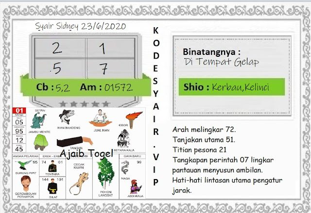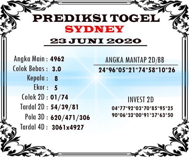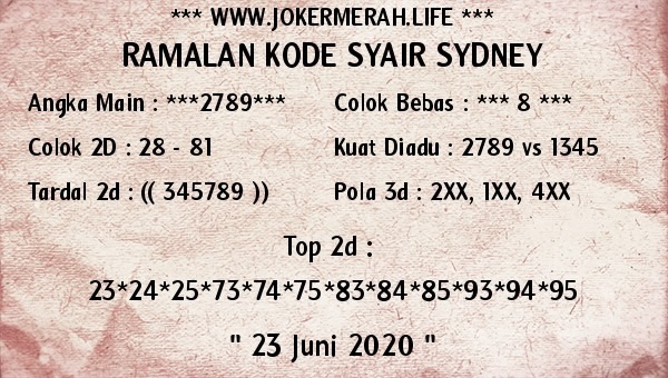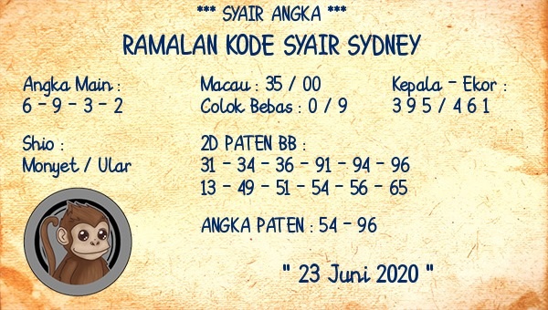 Kode Syair Sdy Selasa 23 Juni 2020 meliputi forum syair sydney , paito warna sdy serta prediksi togel sidney dan di lengkapi juga dengan data pengeluaran sdy 2020 .