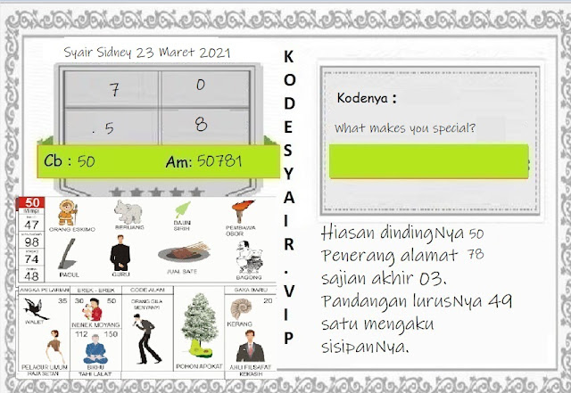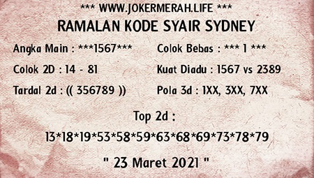 Kode Syair Sdy Selasa 23 Maret 2021, meliputi forum syair sydney , paito warna sdy serta prediksi togel sidney dan di lengkapi juga dengan data pengeluaran sdy 2020 .