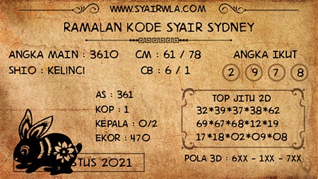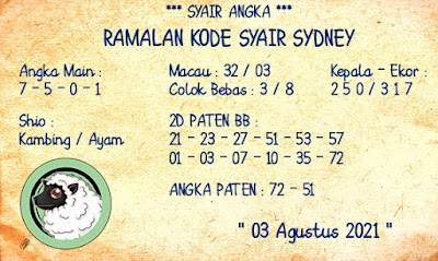 Kode Syair Sdy Selasa 3 Agustus 2021 , meliputi forum syair sydney , Bocoran sdy serta prediksi togel sidney dan di lengkapi juga dengan data pengeluaran sdy 2021 .