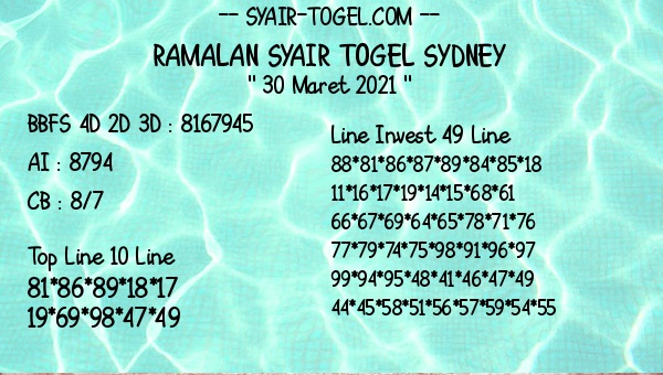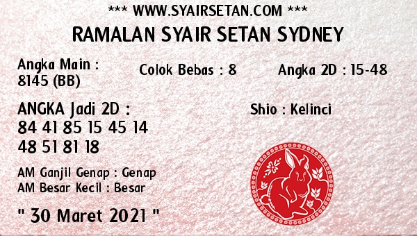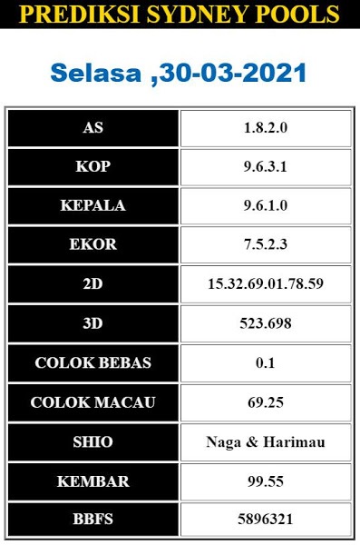 Kode Syair Sdy Selasa 30 Maret 2021, meliputi forum syair sydney , paito warna sdy serta prediksi togel sidney dan di lengkapi juga dengan data pengeluaran sdy 2021 .