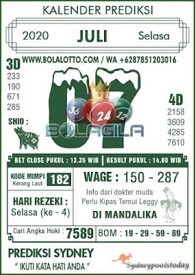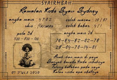 Kode Syair Sdy Selasa 7 Juli 2020 meliputi forum syair sydney , paito warna sdy serta prediksi togel sidney dan di lengkapi juga dengan data pengeluaran sdy 2020 .