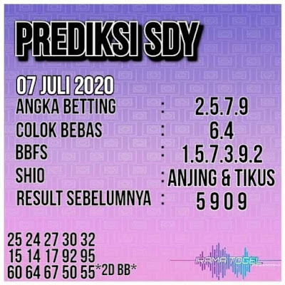Prediksi togel Sdy hari ini 07 Juli 2020