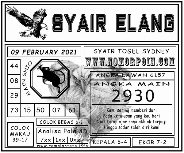 Syair Sdy Selasa 9 Februari 2021