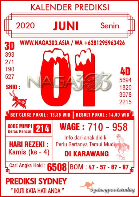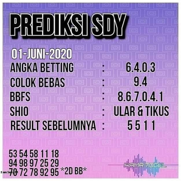 Prediksi togel Sdy hari ini 01 Juni 2020