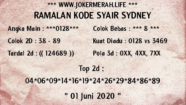 Kode Syair sdy Senin 01 Juni 2020 meliputi forum syair sydney , paito warna sdy serta prediksi togel sidney dan di lengkapi juga dengan data pengeluaran sdy 2020 .