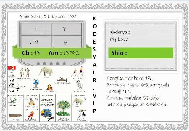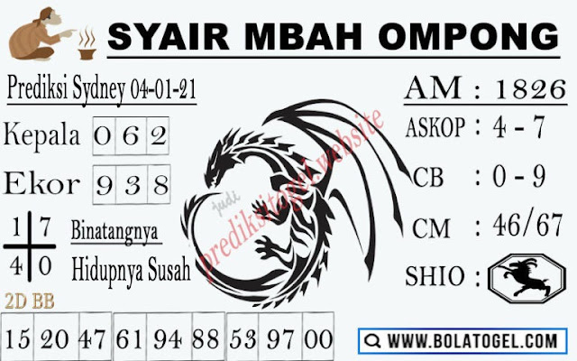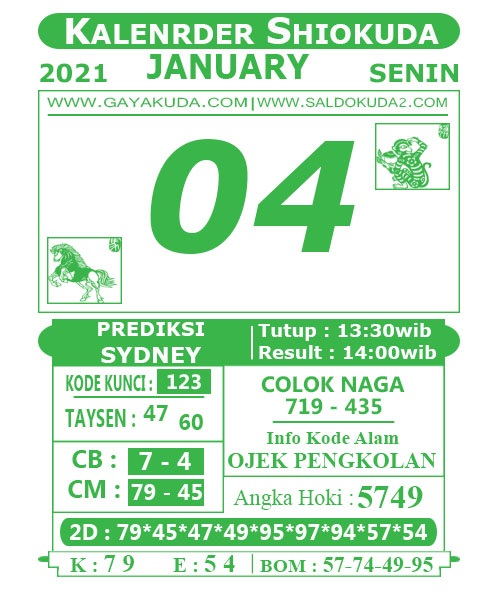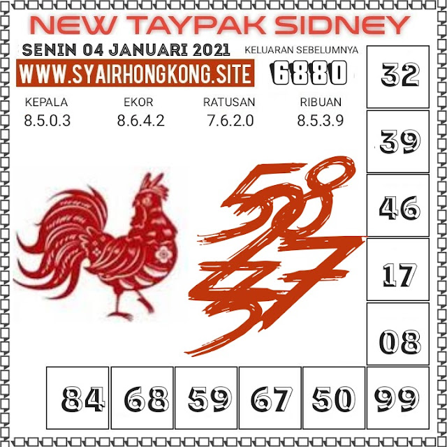 Kode Syair Sdy Senin 04 Januari 2021 meliputi forum syair sydney , paito warna sdy serta prediksi togel sidney dan di lengkapi juga dengan data pengeluaran sdy 2020 .