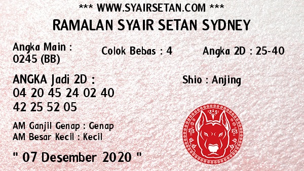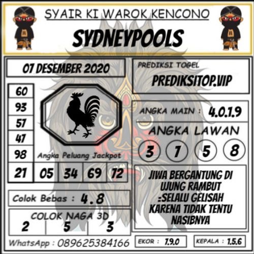 Kode Syair Sdy Senin 07 desember 2020 meliputi forum syair sydney , paito warna sdy serta prediksi togel sidney dan di lengkapi juga dengan data pengeluaran sdy 2020 .