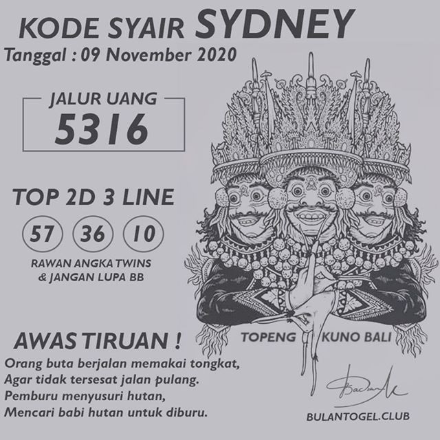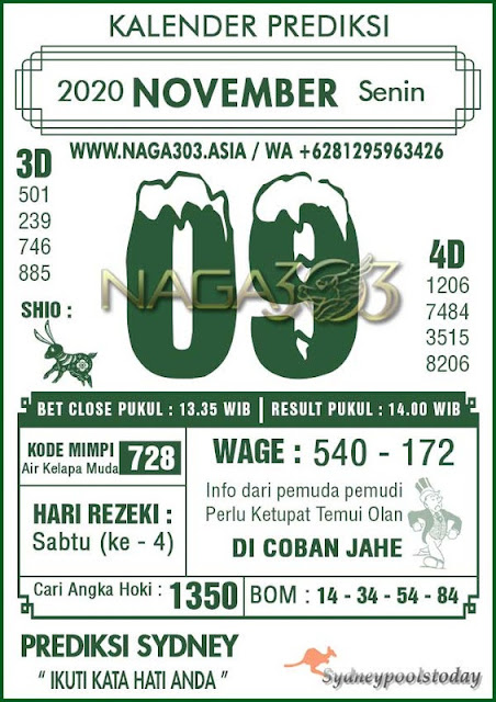 Syair Sdy Senin 09 November 2020
