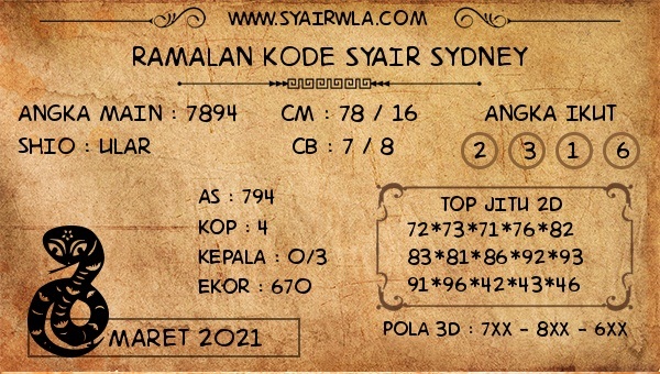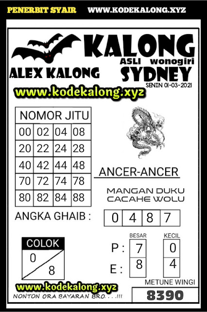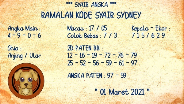 Kode Syair Sdy Senin 1 Maret 2021, meliputi forum syair sydney , paito warna sdy serta prediksi togel sidney dan di lengkapi juga dengan data pengeluaran sdy 2020 .