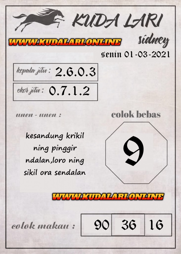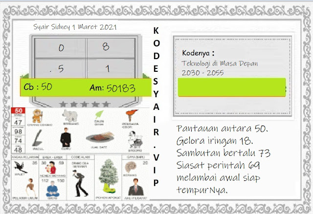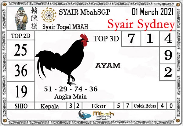 Syair Sdy Senin 1 Maret 2021