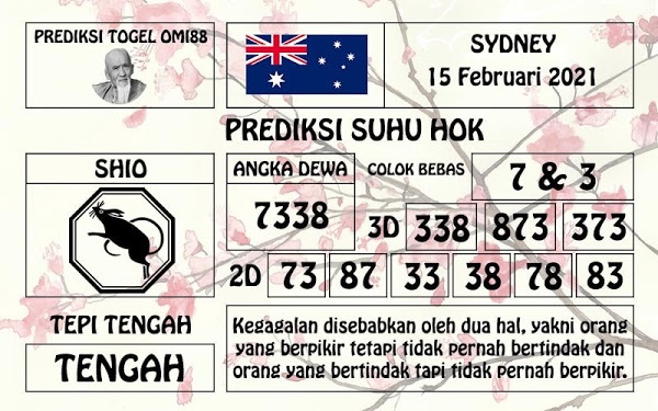 Kode Syair Sdy Senin 15 Februari 2021, meliputi forum syair sydney , paito warna sdy serta prediksi togel sidney dan di lengkapi juga dengan data pengeluaran sdy 2020 .