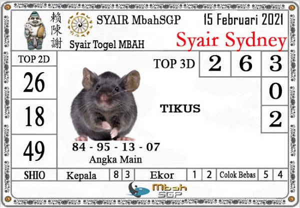 Syair Sdy Senin 15 Februari 2021