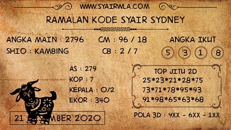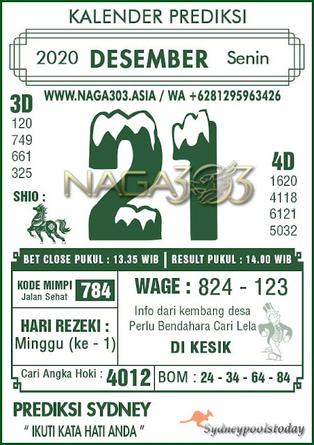 Kode Syair Sdy Senin 21 desember 2020 meliputi forum syair sydney , paito warna sdy serta prediksi togel sidney dan di lengkapi juga dengan data pengeluaran sdy 2020 .
